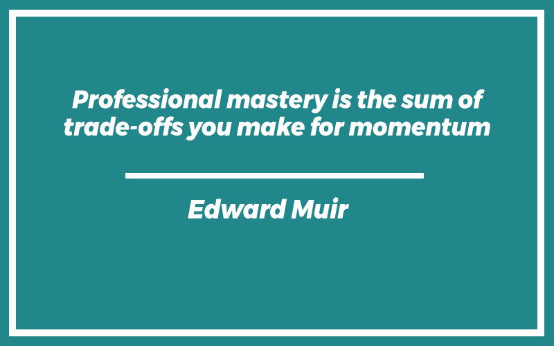 “Professional mastery is the sum of trade-offs you make for momentum.”Edward Muir