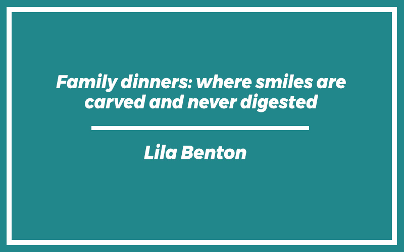 “Family dinners: where smiles are carved and never digested.” – Lila Benton