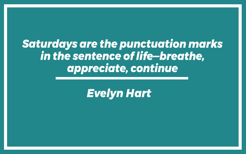 “Saturdays are the punctuation marks in the sentence of life—breathe, appreciate, continue.” – Evelyn Hart