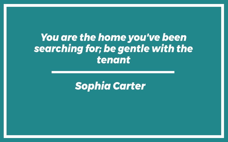“You are the home you’ve been searching for; be gentle with the tenant.”Sophia Carter