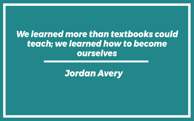 “We learned more than textbooks could teach; we learned how to become ourselves.” – Jordan Avery