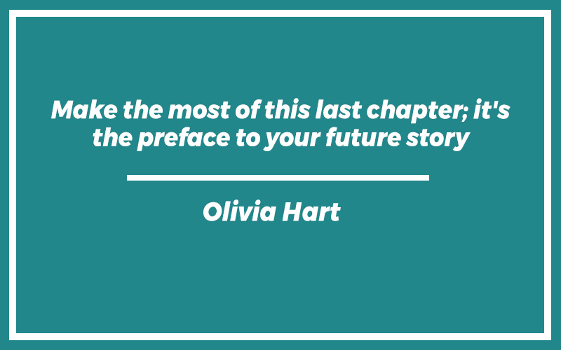 “Make the most of this last chapter; it’s the preface to your future story.” – Olivia Hart