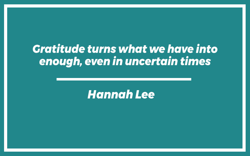 “Gratitude turns what we have into enough, even in uncertain times.” – Hannah Lee