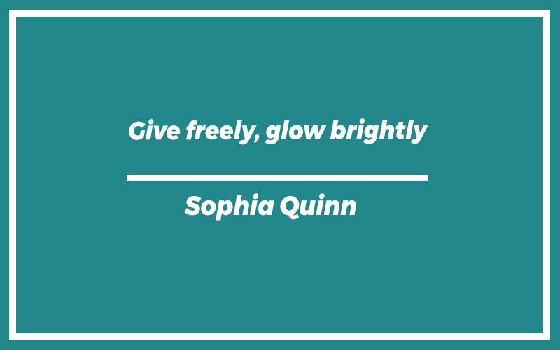 “Give freely, glow brightly.” – Sophia Quinn