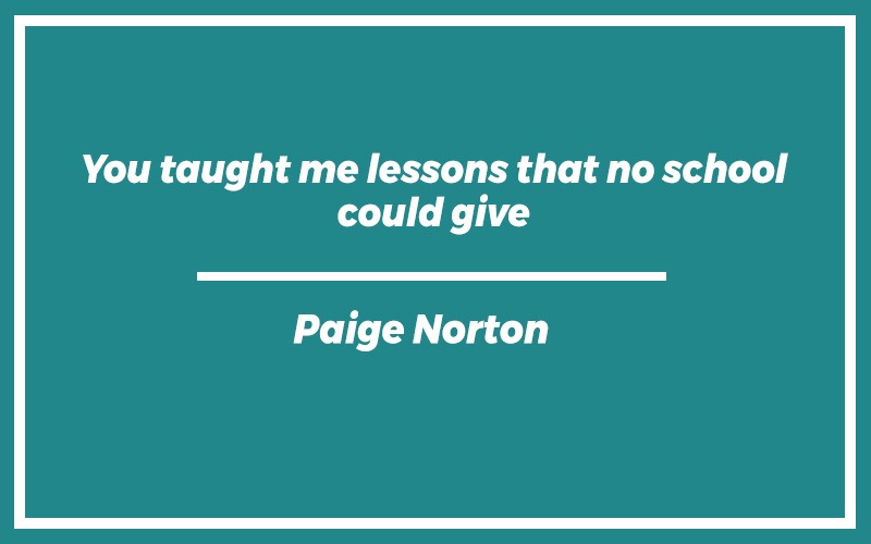 “You taught me lessons that no school could give.”Paige Norton