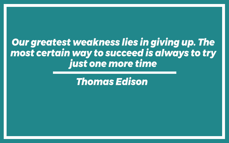 “Our greatest weakness lies in giving up. The most certain way to succeed is always to try just one more time.” Thomas Edison