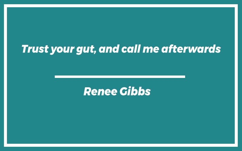 “Trust your gut, and call me afterwards.” – Renee Gibbs