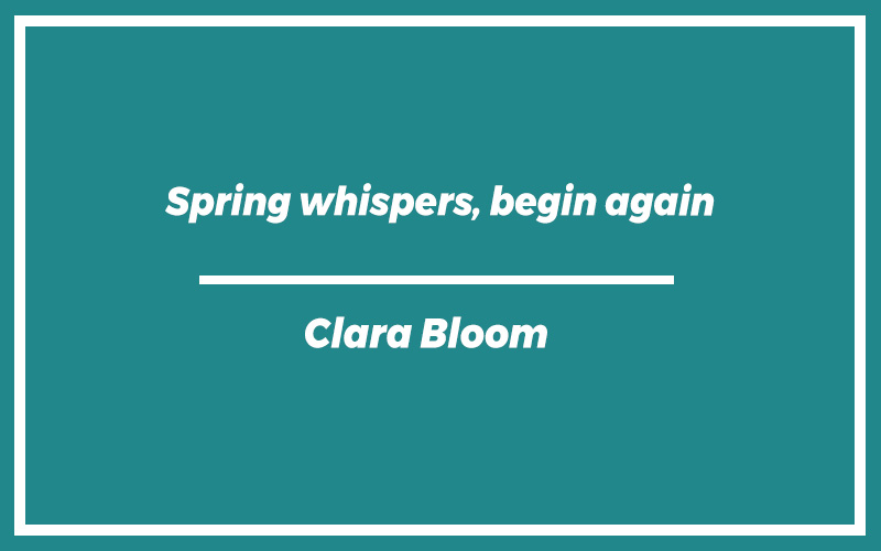 “Spring whispers, begin again.” – Clara Bloom