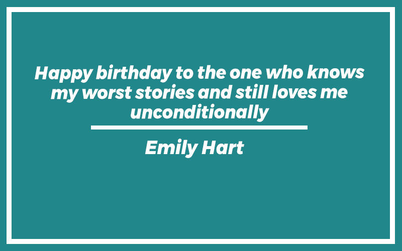 “Happy birthday to the one who knows my worst stories and still loves me unconditionally.” – Emily Hart