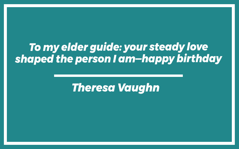 “To my elder guide: your steady love shaped the person I am—happy birthday.” – Theresa Vaughn