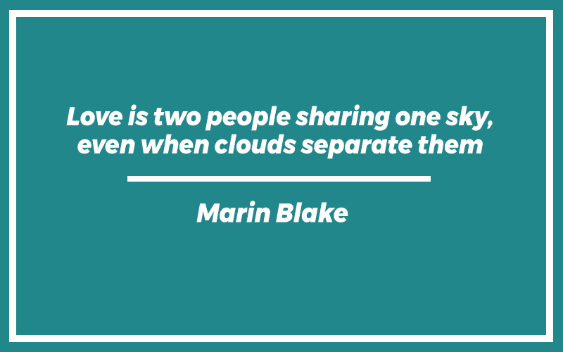 “Love is two people sharing one sky, even when clouds separate them.” – Marin Blake