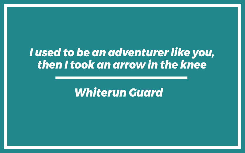 “I used to be an adventurer like you, then I took an arrow in the knee.” – Whiterun Guard