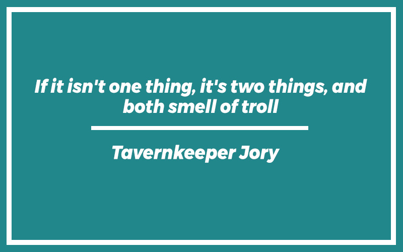 “If it isn’t one thing, it’s two things, and both smell of troll.” – Tavernkeeper Jory