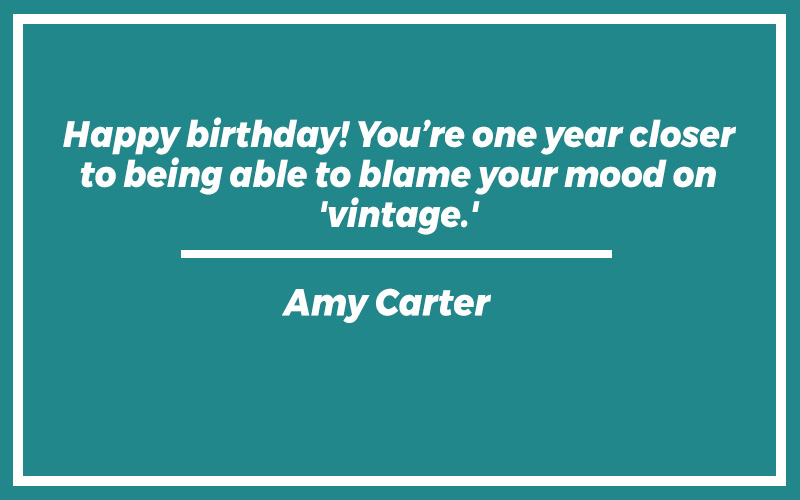 “Happy birthday! You’re one year closer to being able to blame your mood on ‘vintage.'”Amy Carter