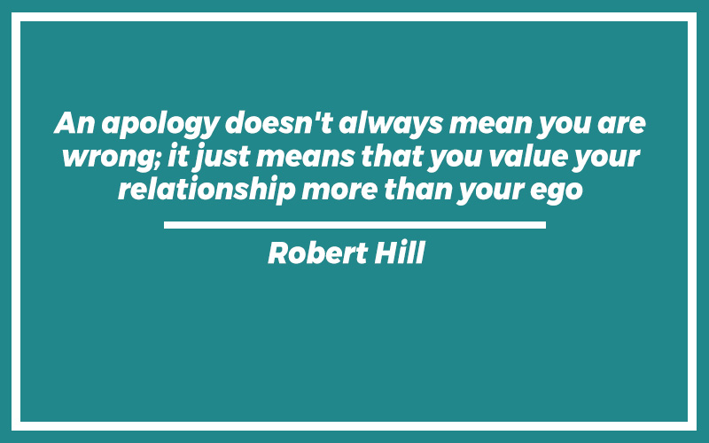 “An apology doesn’t always mean you are wrong; it just means that you value your relationship more than your ego.”Robert Hill