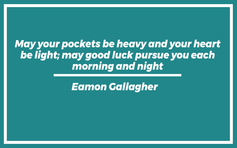 “May your pockets be heavy and your heart be light; may good luck pursue you each morning and night.”Eamon Gallagher