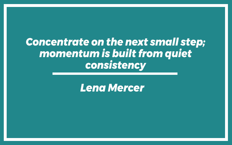 “Concentrate on the next small step; momentum is built from quiet consistency.” – Lena Mercer