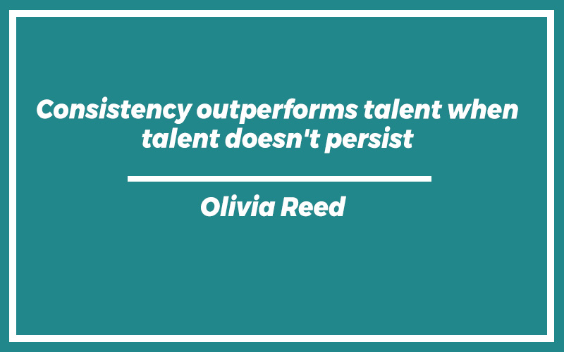 “Consistency outperforms talent when talent doesn’t persist.” – Olivia Reed