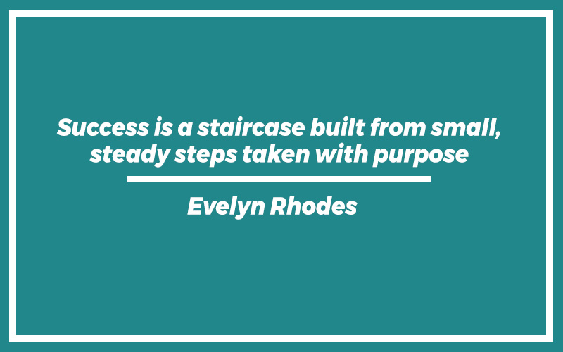 “Success is a staircase built from small, steady steps taken with purpose.”Evelyn Rhodes