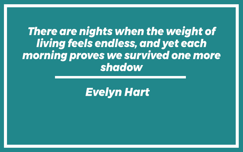 “There are nights when the weight of living feels endless, and yet each morning proves we survived one more shadow.” – Evelyn Hart