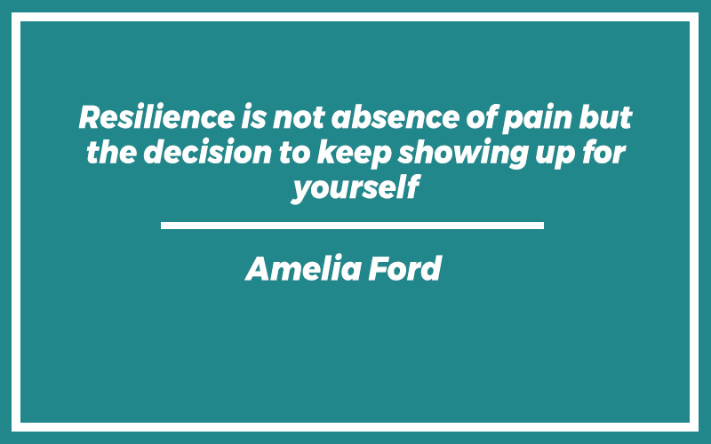 “Resilience is not absence of pain but the decision to keep showing up for yourself.” – Amelia Ford
