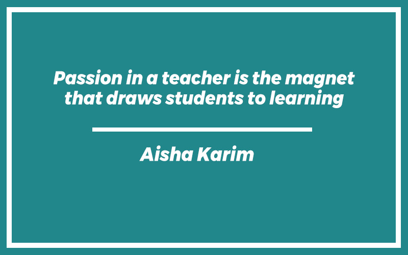 “Passion in a teacher is the magnet that draws students to learning.”Aisha Karim