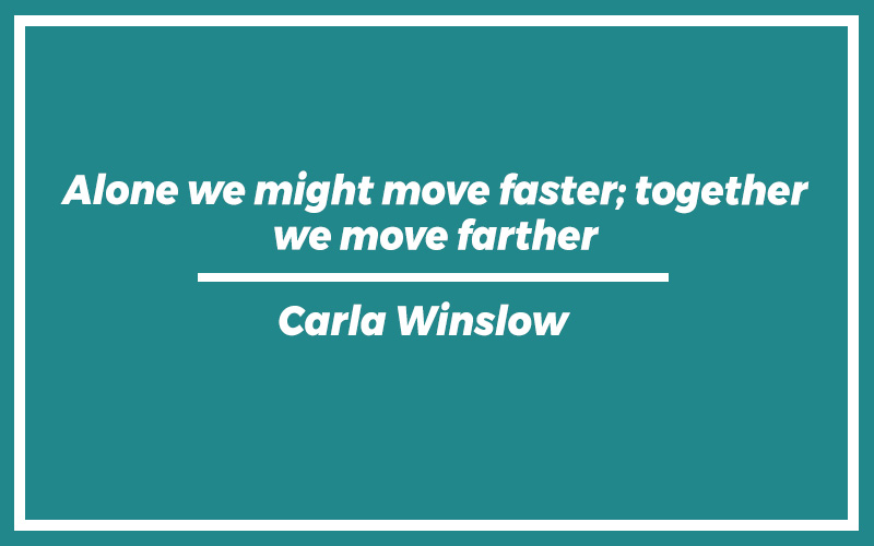 “Alone we might move faster; together we move farther.” – Carla Winslow