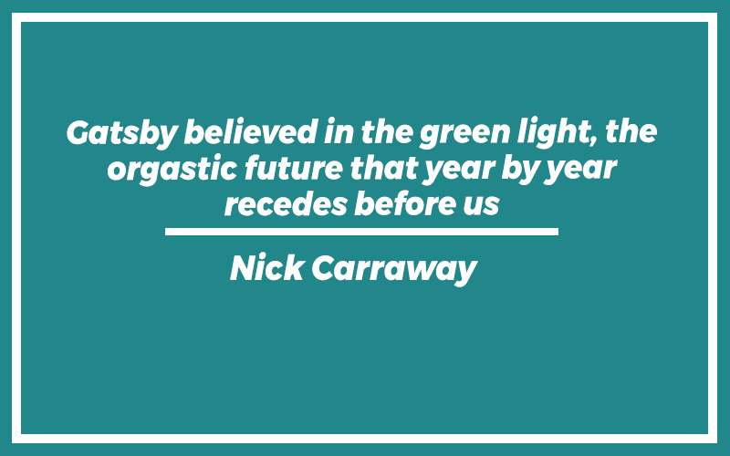 “Gatsby believed in the green light, the orgastic future that year by year recedes before us.” – Nick Carraway