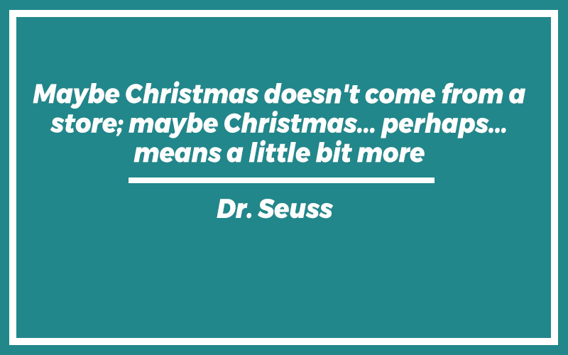 “Maybe Christmas doesn’t come from a store; maybe Christmas… perhaps… means a little bit more.” – Dr. Seuss