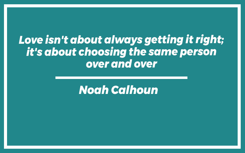 “Love isn’t about always getting it right; it’s about choosing the same person over and over.” – Noah Calhoun
