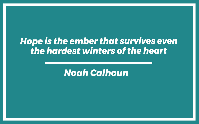 “Hope is the ember that survives even the hardest winters of the heart.” – Noah Calhoun