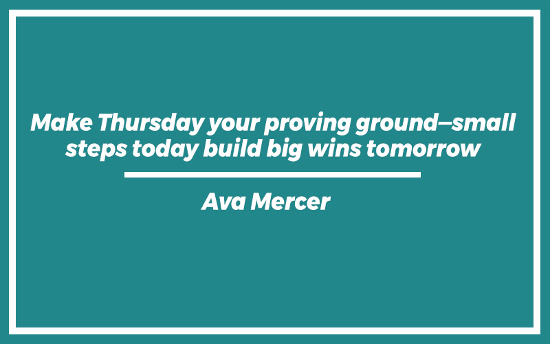 “Make Thursday your proving ground—small steps today build big wins tomorrow.”Ava Mercer