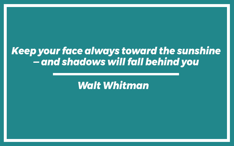 “Keep your face always toward the sunshine — and shadows will fall behind you.” – Walt Whitman