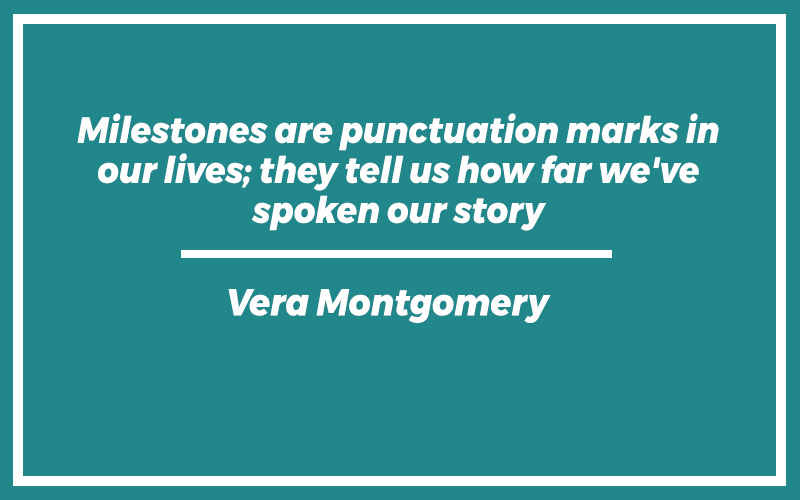 “Milestones are punctuation marks in our lives; they tell us how far we’ve spoken our story.”Vera Montgomery