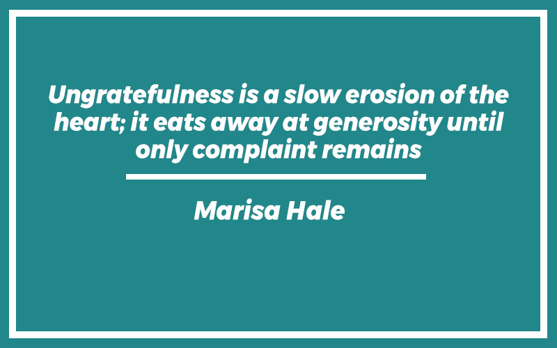 “Ungratefulness is a slow erosion of the heart; it eats away at generosity until only complaint remains.” – Marisa Hale