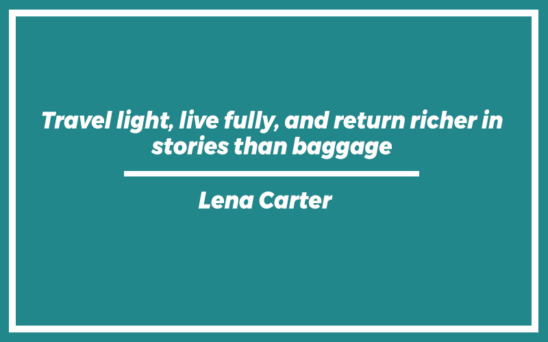 “Travel light, live fully, and return richer in stories than baggage.” – Lena Carter
