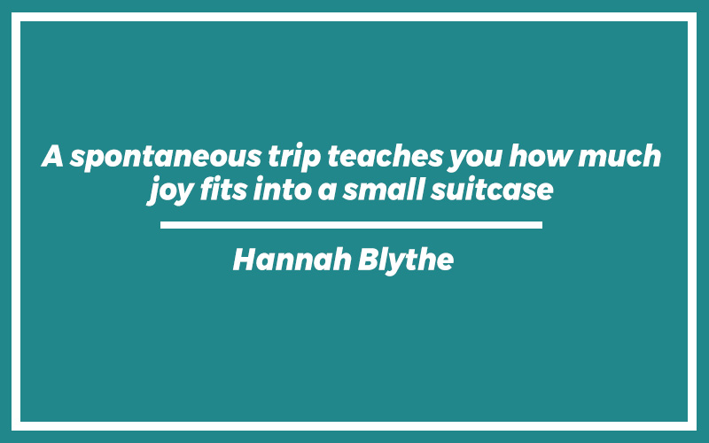 “A spontaneous trip teaches you how much joy fits into a small suitcase.” – Hannah Blythe