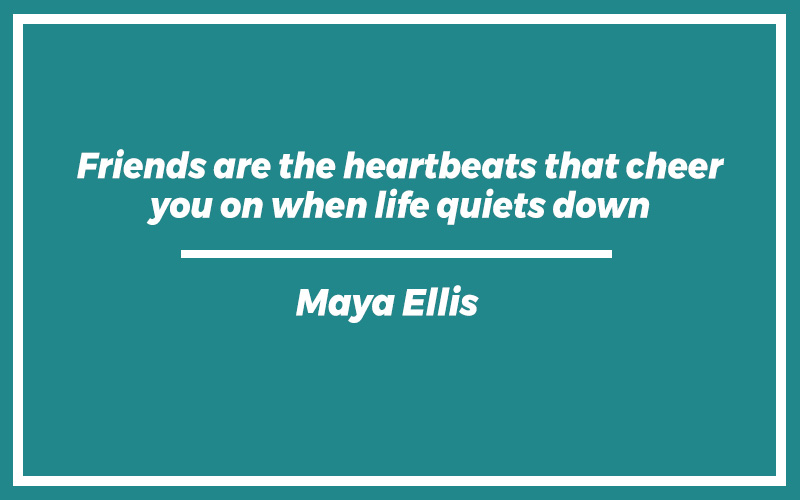 “Friends are the heartbeats that cheer you on when life quiets down.”Maya Ellis