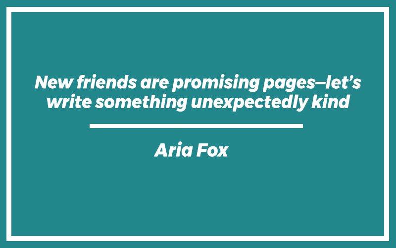 “New friends are promising pages—let’s write something unexpectedly kind.”Aria Fox