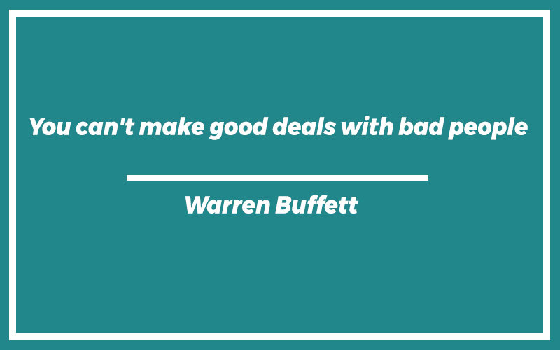 “You can’t make good deals with bad people.”Warren Buffett