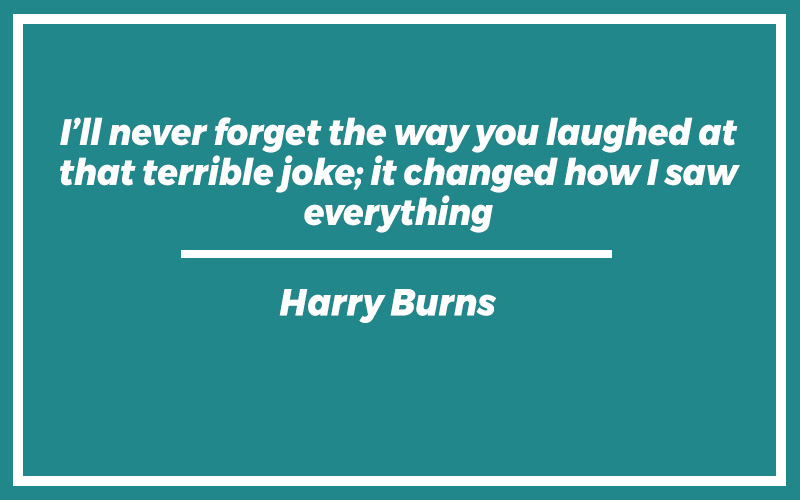 “I’ll never forget the way you laughed at that terrible joke; it changed how I saw everything.” – Harry Burns