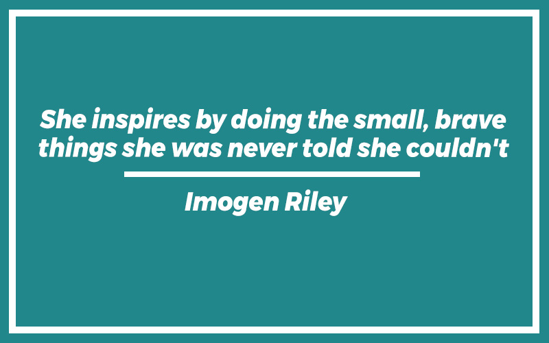 “She inspires by doing the small, brave things she was never told she couldn’t.” – Imogen Riley