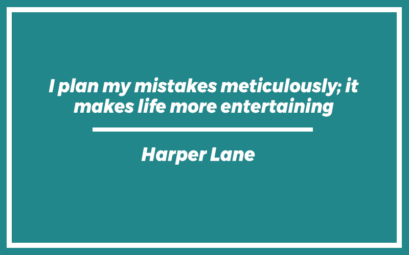 “I plan my mistakes meticulously; it makes life more entertaining.”Harper Lane