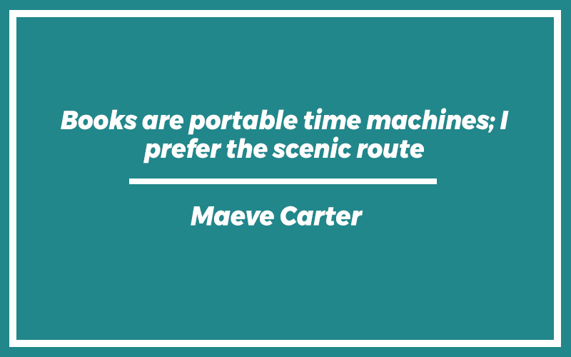 “Books are portable time machines; I prefer the scenic route.”Maeve Carter