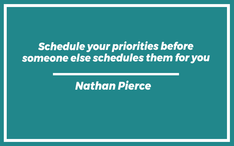 “Schedule your priorities before someone else schedules them for you.” – Nathan Pierce