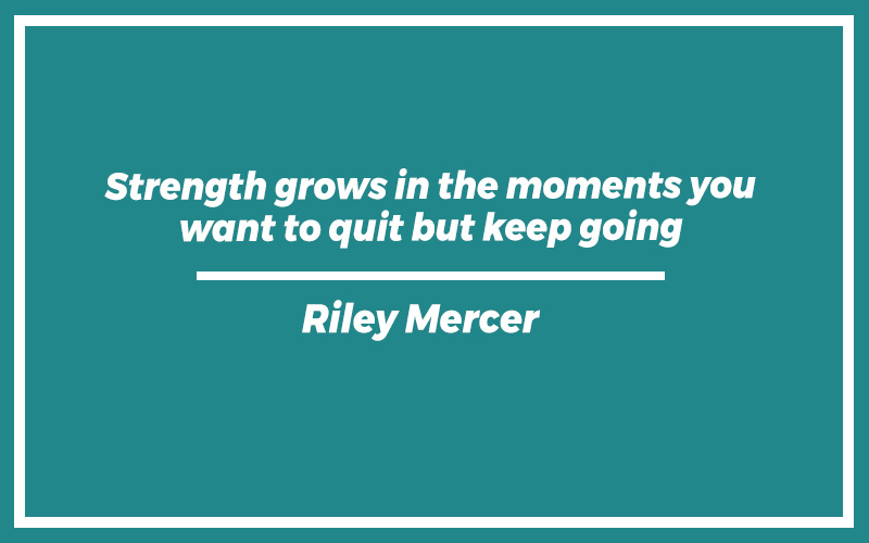 “Strength grows in the moments you want to quit but keep going.” – Riley Mercer