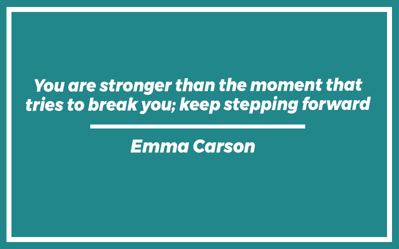 “You are stronger than the moment that tries to break you; keep stepping forward.” – Emma Carson
