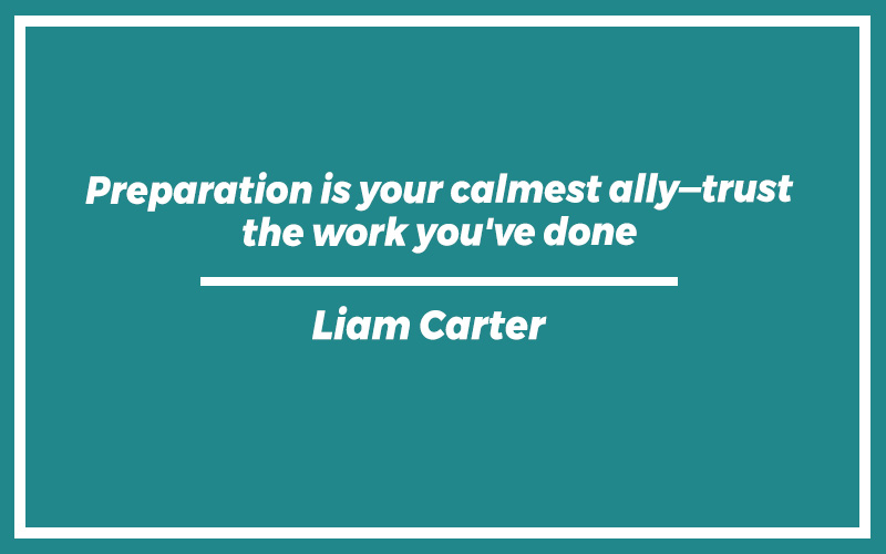 “Preparation is your calmest ally—trust the work you’ve done.” – Liam Carter