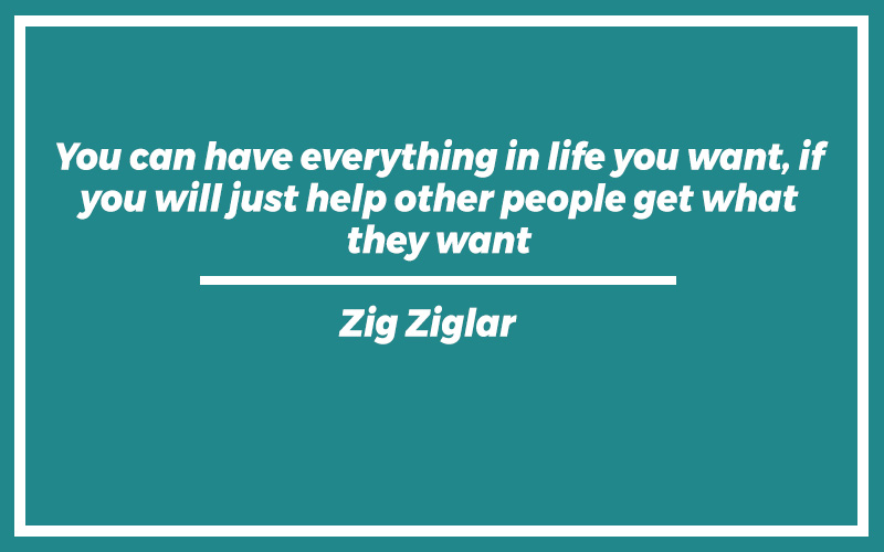 “You can have everything in life you want, if you will just help other people get what they want.” – Zig Ziglar
