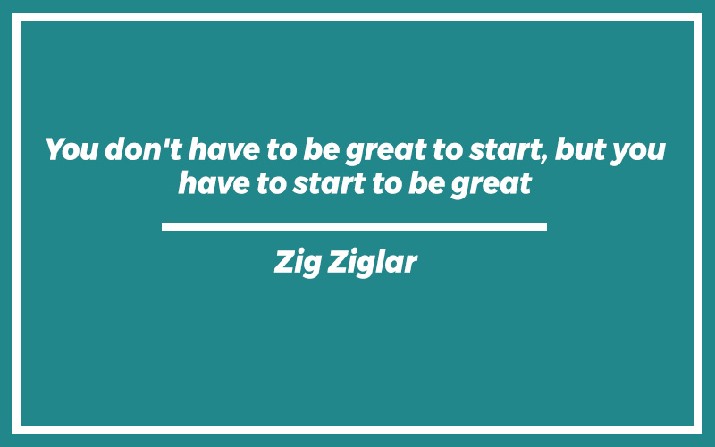 “You don’t have to be great to start, but you have to start to be great.” – Zig Ziglar